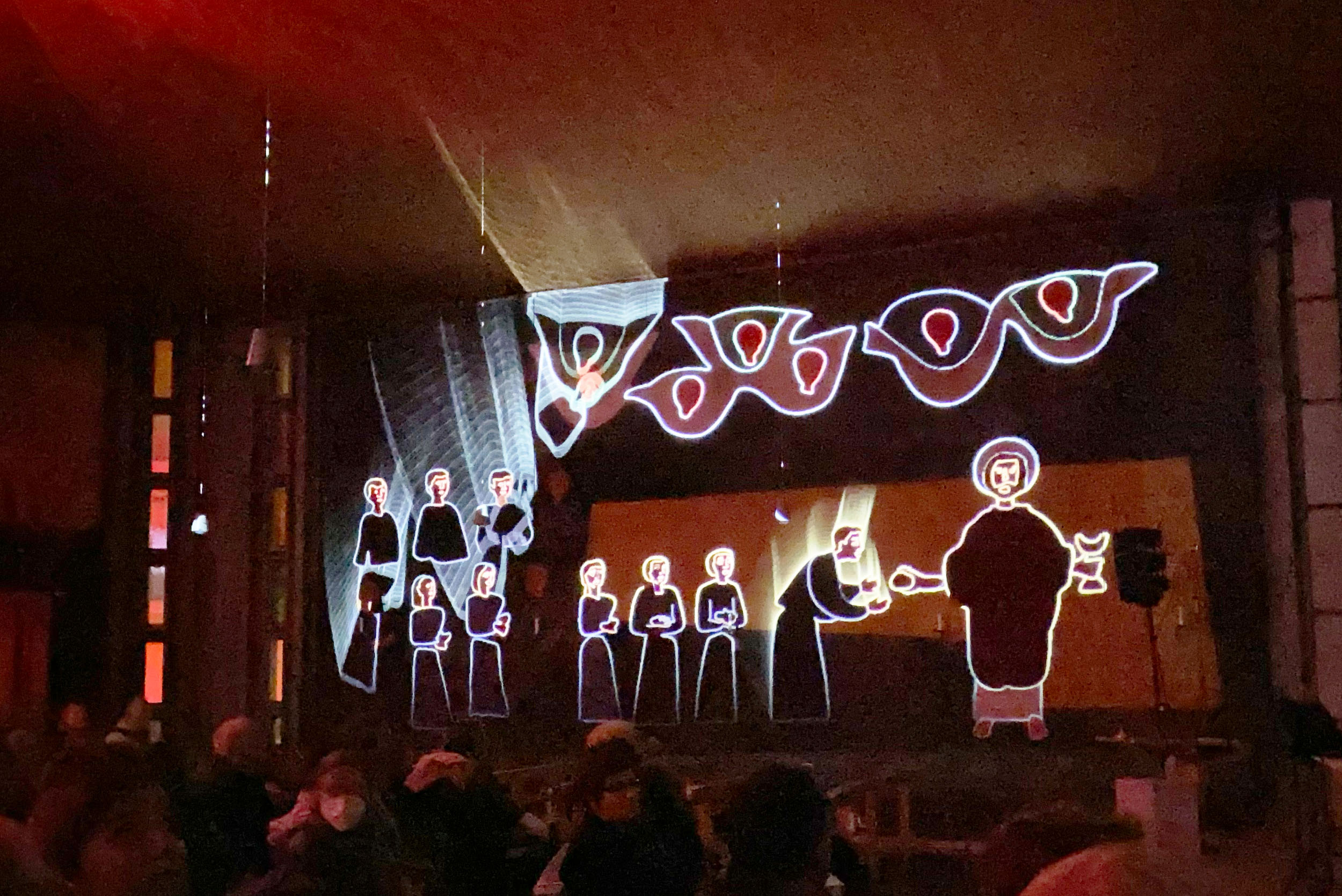 «Es ist vollbracht… gestern ist die «Verhüllt»-Spielzeit (leider schon wieder) zu Ende gegangen – und euer grosses Projekt ist zu einem (soweit ich es beobachten konnte) Riesenerfolg geworden. Auf diesem Weg will ich euch herzlich zu diesem Erfolg gratulieren, verbunden mit einem grossen Dank für diesen «Special Event» in unserer Pfarrkirche Bruder Klaus! Ich habe das Multimediaspektakel zweimal erleben dürfen und war beeindruckt, begeistert und berührt – ganz besonders von den «Beziehungs-DANN-Fäden», die sich gegen Schluss über den «Oberwiler Kirchenhimmel» in die ganze Welt ausstreckten … Auch von vielen anderen habe ich sehr positive Echos vernommen, die ich gerne «anonym» an euch weiterleite.» - B. S.